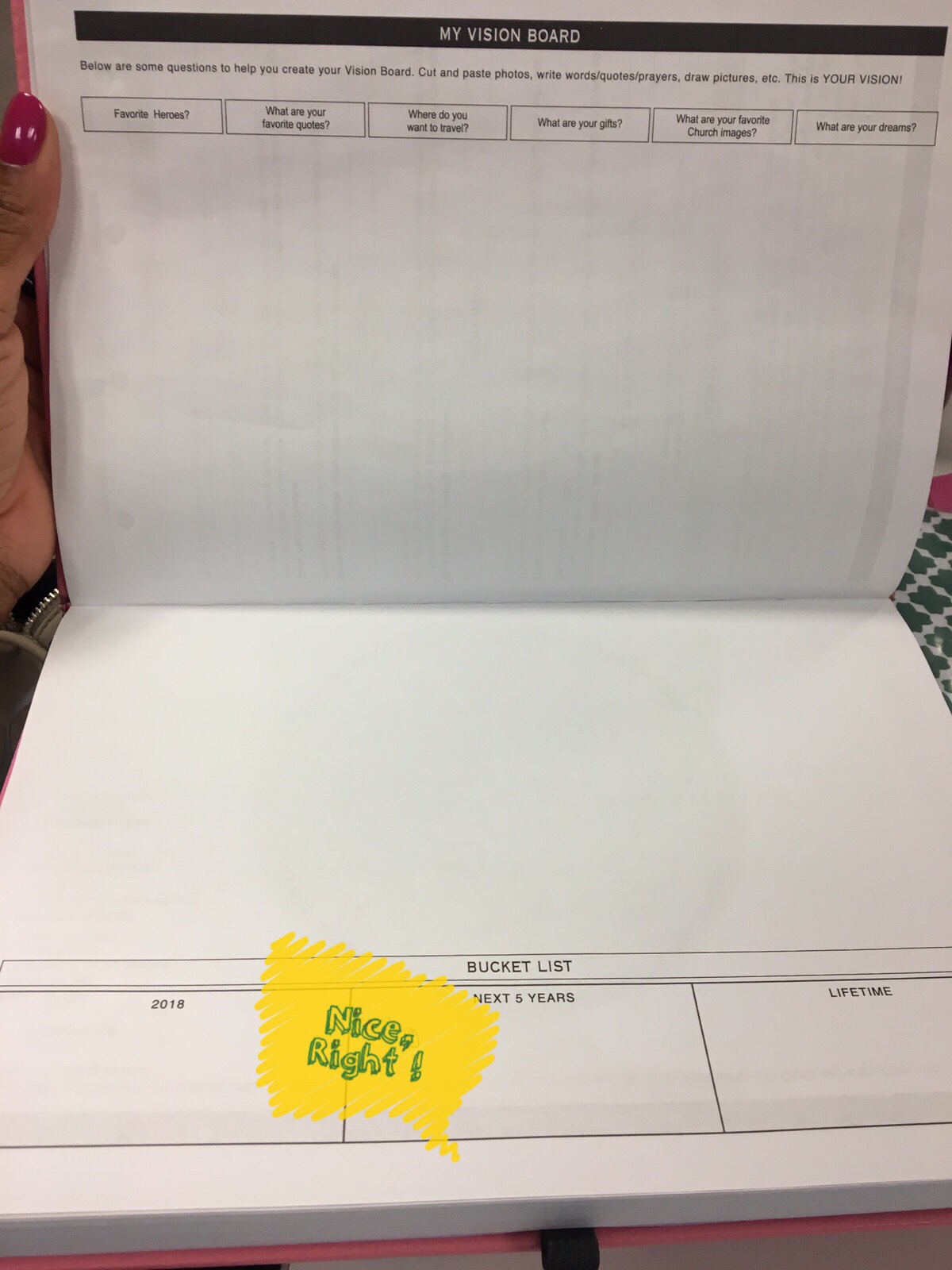 In the beginning of the planner, there is a section for your .. vision board ( the irony ) and goals / objectives you want to meet daily, weekly, monthly etc. Okay, everything is lining up it seems.