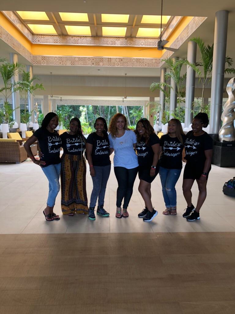 We order bride and bride entourage shirts from amazon for like ten dollars , which we wore to the airport. All black bathing suits and white for the bride that we wore to the beach with matching hats and did an All White night for the final dinner.